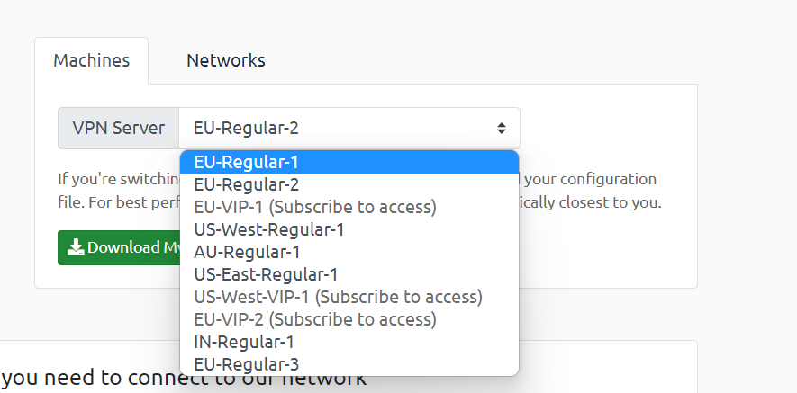 Vpn server bölümünden istediğiniz bölgeyi seçebilir Download My Configuration File butonundan size ait vpni indirebilirsiniz